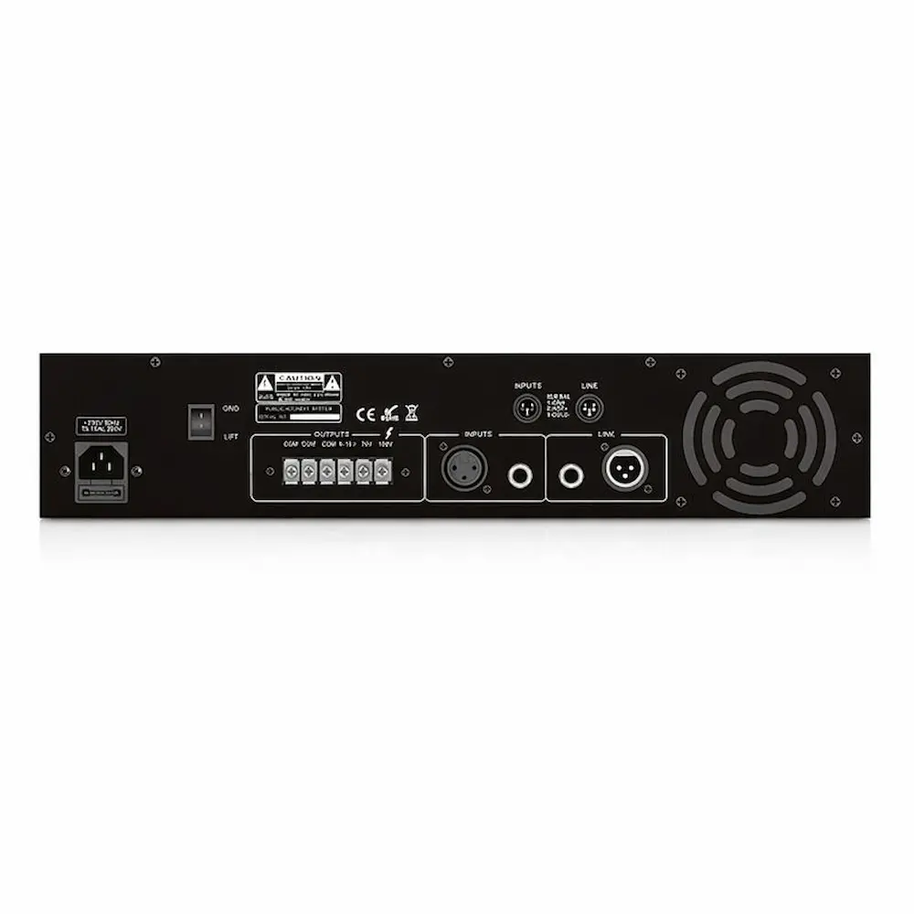 - Sorties haut-parleur: 70 V, 100 V, 4-16 Ω adaptables selon installation