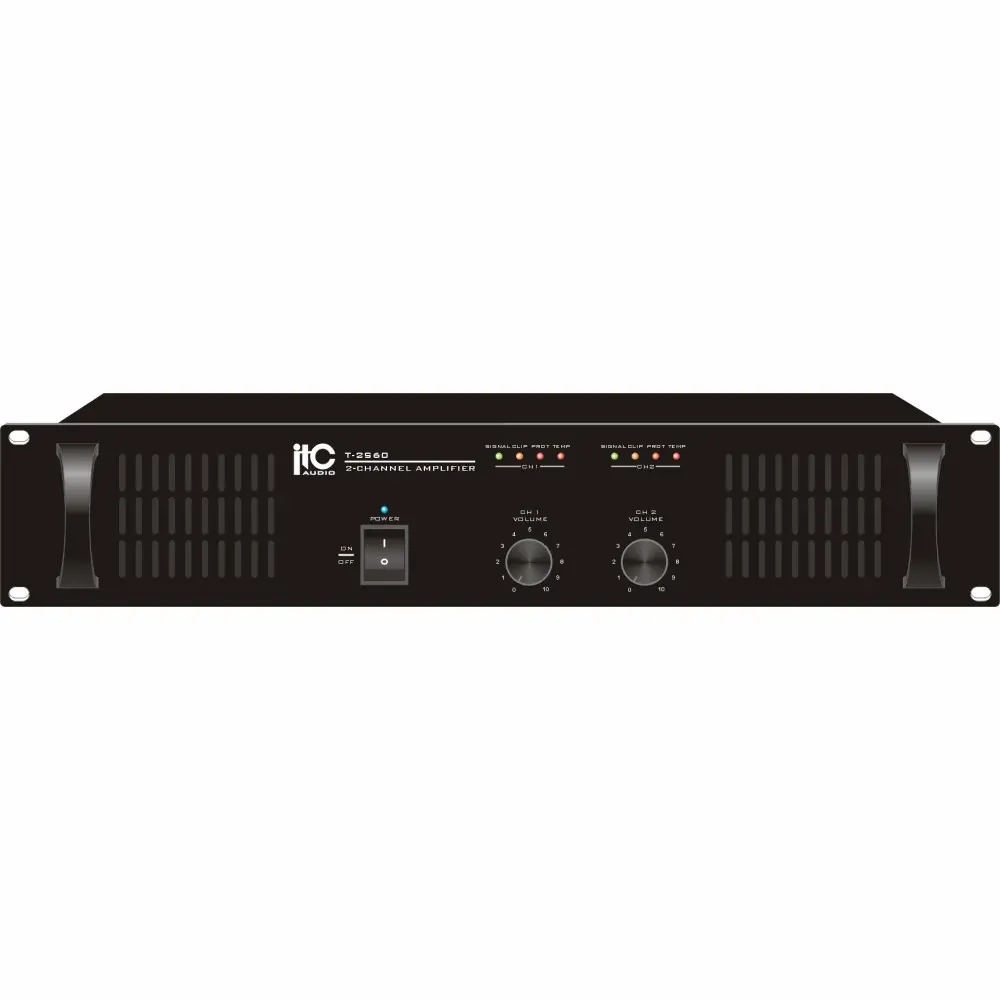 ITC T-2S60 est un amplificateur de puissance professionnel délivrant 60 W par canal pour la sonorisation commerciale et industrielle. Il est idéal pour les systèmes audio en entreprise, magasins ou installations publiques nécessitant un gain fiable du signal. Sa conception rack 2U avec protections multiples garantit un fonctionnement sûr et durable.